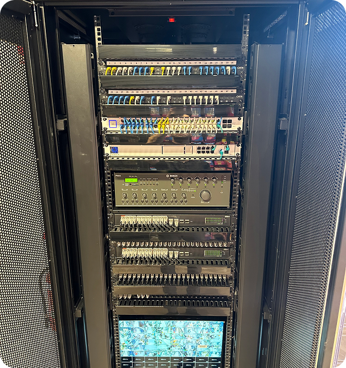 We design your rack layout, cable routes, patching structure and integration points to ensure maximum reliability.