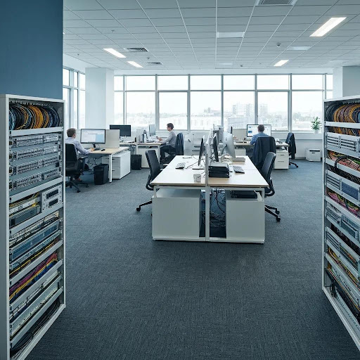 Structured cabling is a standardised approach to building a cabling infrastructure that organises horizontal cabling, backbone links, patch panels and telecommunications rooms to deliver consistent network performance and simplified management. The mechanism is modular design, work-area outlets connect via horizontal cabling to patch panels in racks, which in turn connect over backbone fibres or copper to distribution equipment, delivering predictable latency and simplified fault isolation. The specific benefit is predictable scalability: new devices, switches and AV endpoints can be added or reconfigured quickly without disruptive rewiring, which saves time and reduces operational risk. Understanding these basics prepares an office to support demanding applications such as 10Gb Ethernet, PoE-powered devices and unified communications.
